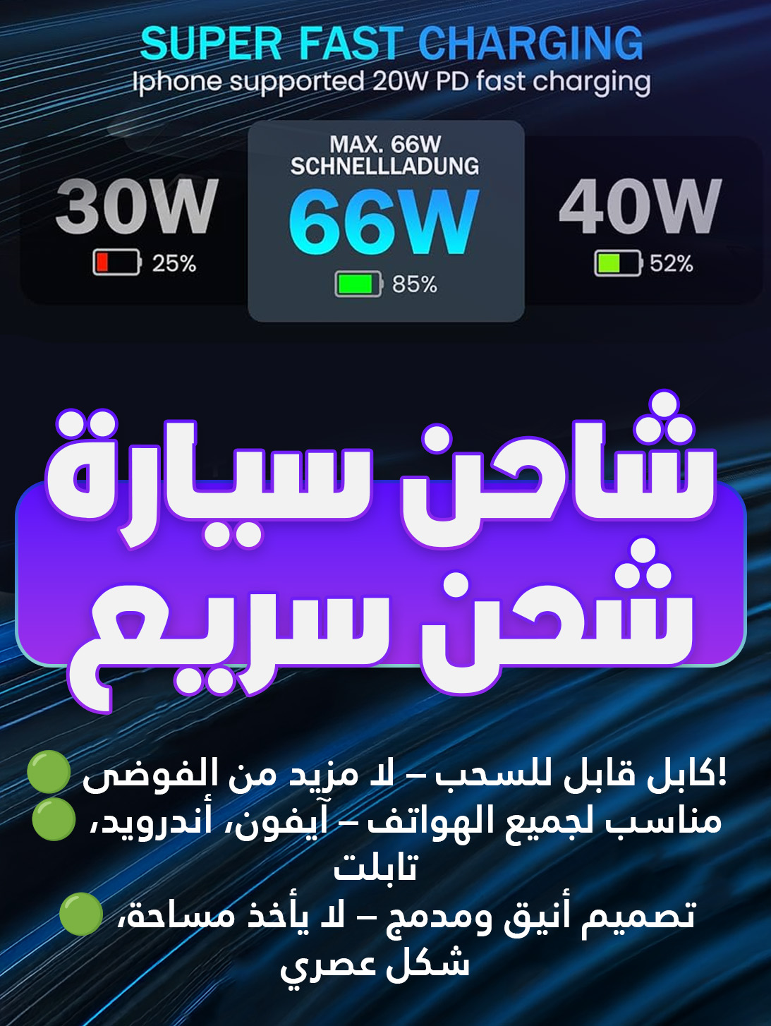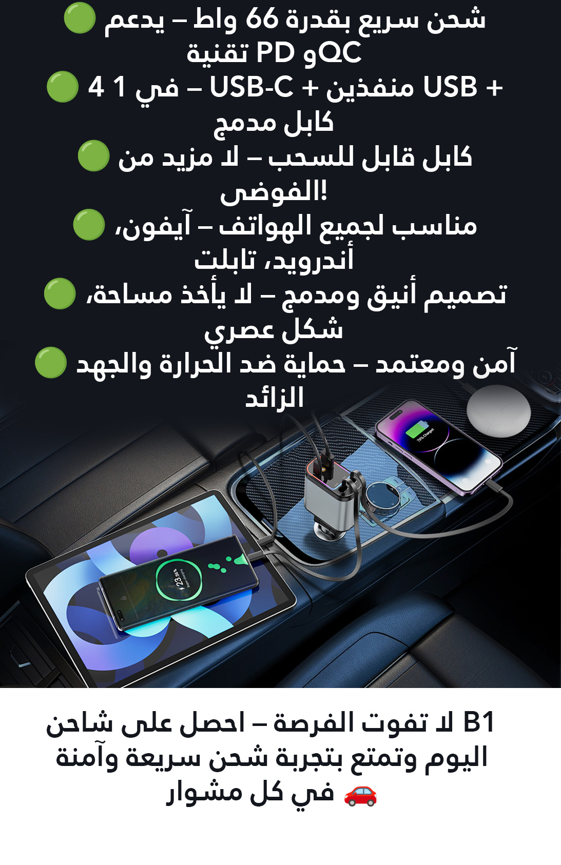 الشاحن مره وايد حلو، ويشحن اسرع من الشواحن العادية. ضوء النجوم بعد يضيف جوا مميز داخل السيارة.
